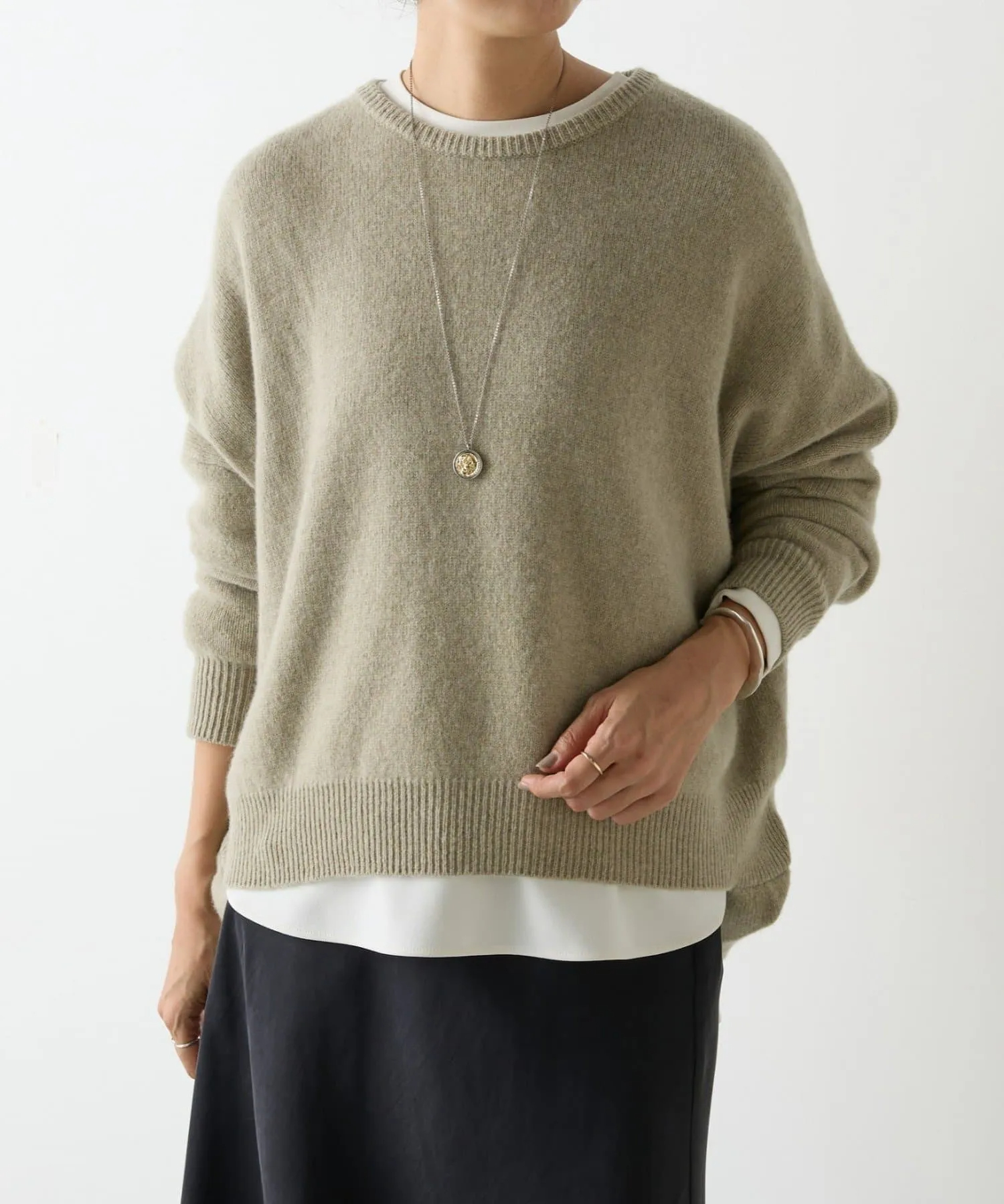 上品な可愛さ クルーネック長袖ゆったりカジュアルトップスニットセーター